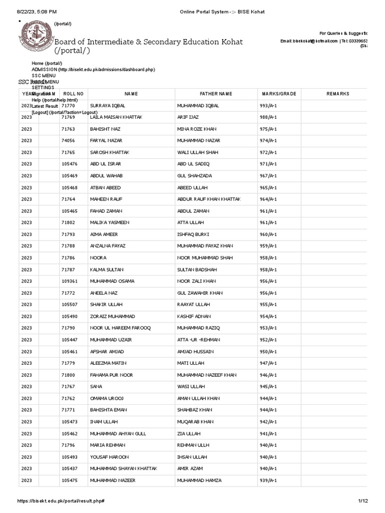 Online Portal System Bise Kohat. Bise kohat intermediate 11th class result 2022 can be checked on the official website of the board www.bisekt.edu.pk. Kohat board of intermediate and secondary education matric results, search online with roll number of part 1 and part 2 exams, also supplementary.